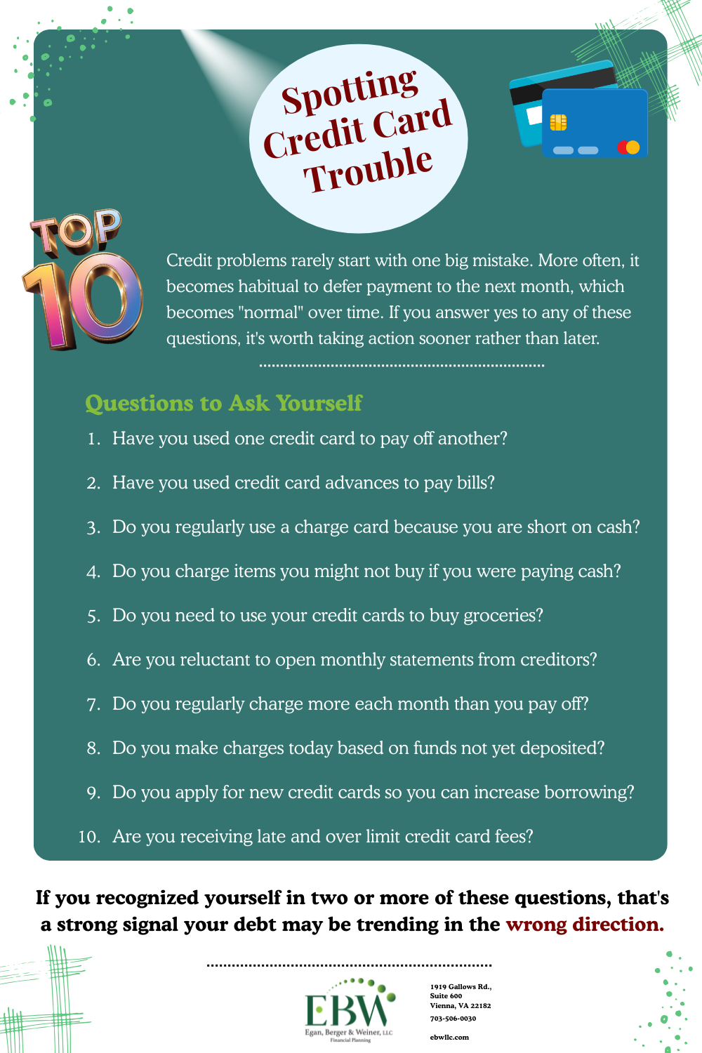 At EBW, our goal is to provide clear, practical education that helps households make informed financial decisions that put you in control of your finances. Start taking control of your finances by reviewing your credit card and debit card accounts by asking yourself the following questions.