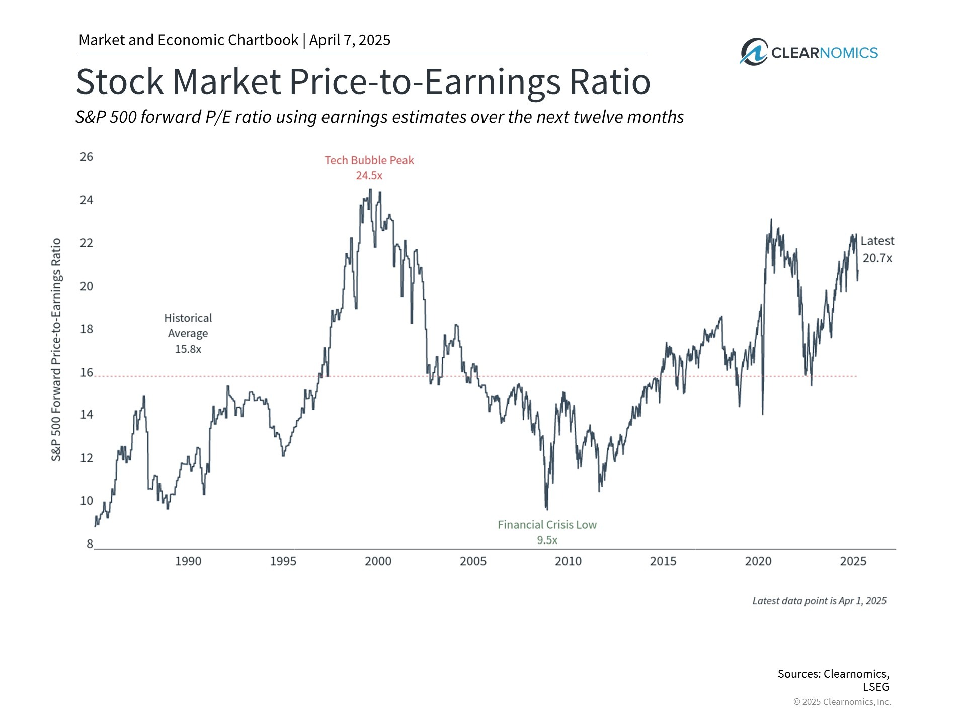 Valuations are more attractive today after multiple years of strong stock market returns. While it is still unclear where earnings will settle after accounting for tariffs, the price-to-earnings ratio of the overall S&P 500 has declined to 20.7x. Some sectors such as Information Technology, Communication Services, and Consumer Discretionary, have seen multiples decline more amid the broader pullback.