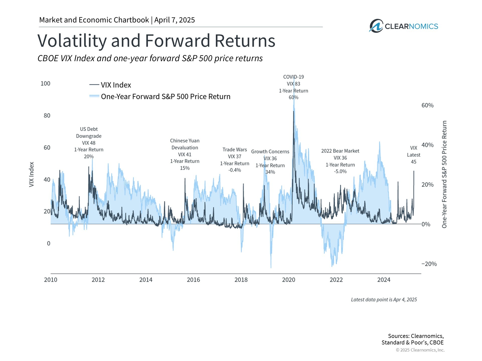 It's important to note that this is not an argument for market timing. Even when the VIX is high, there is no guarantee that markets will rebound quickly. Instead, investors should view this as additional support for taking a portfolio perspective. Market downturns often occur when valuations are the most attractive, and thus it can make sense to shift toward – not away – from these assets. Of course, what makes sense for a given portfolio depends on the specific circumstances.